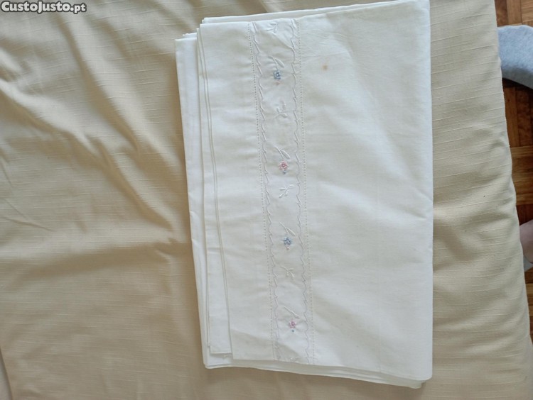 Lençol NOVO, bordado com florinhas, para cama de casal.