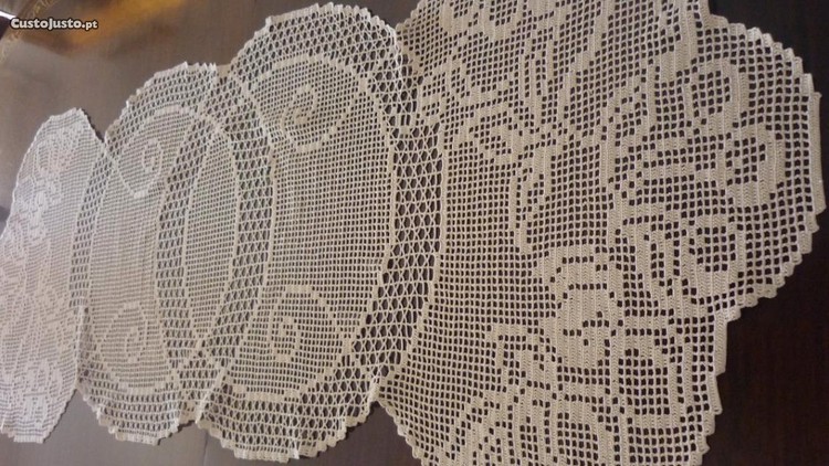 Naperon de mesa feito á mão em linha fina c/ as medidas, 1,30x0,50cm