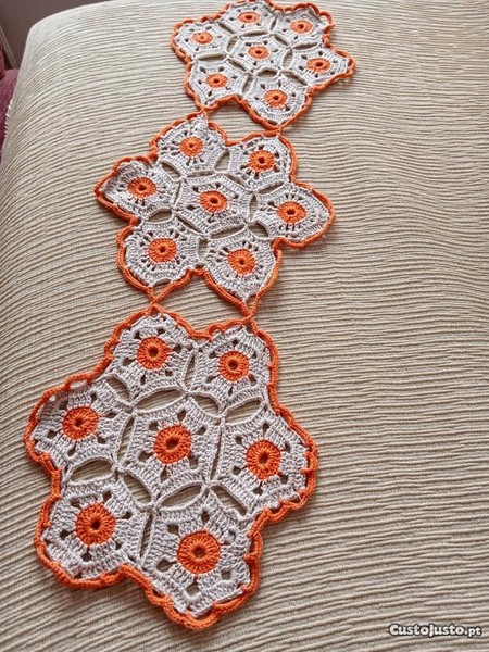 Preço: 5 €Naperon em crochê com 3 partes+ oferta de duas blusas