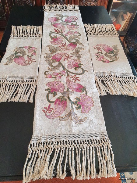 Naperons pintados à mão em tecido adamascado branco ,acabados de fazer,forrados.Vendo em separado.