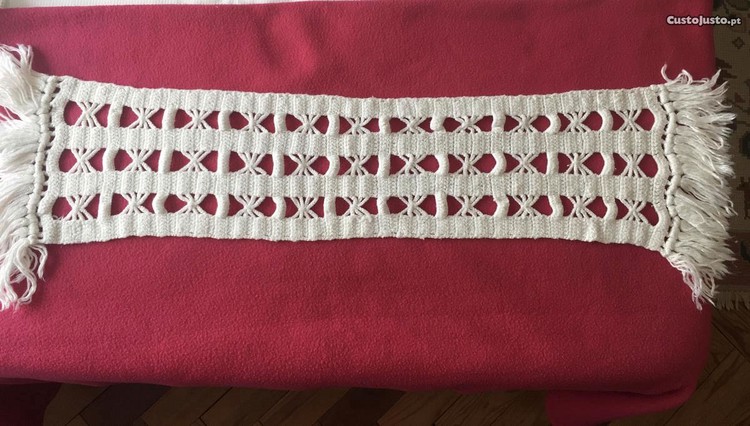 Preço: 2 €Napperon branco em crochet com franja nas pontas