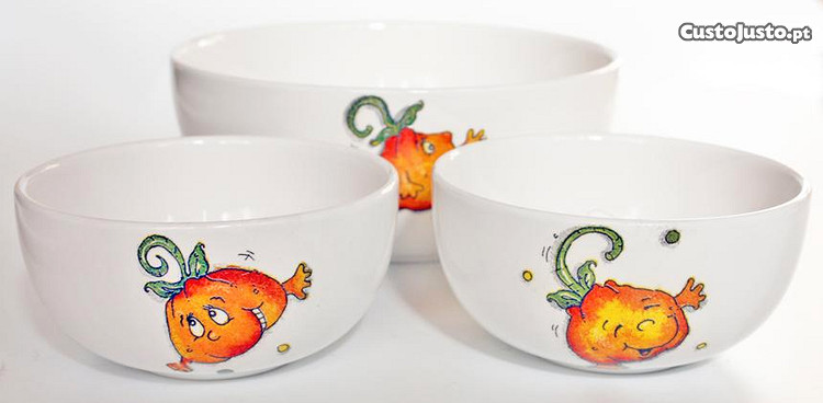 Conjunto de duas tigelas, com motivos de abobrinhas bem-dispostas.
