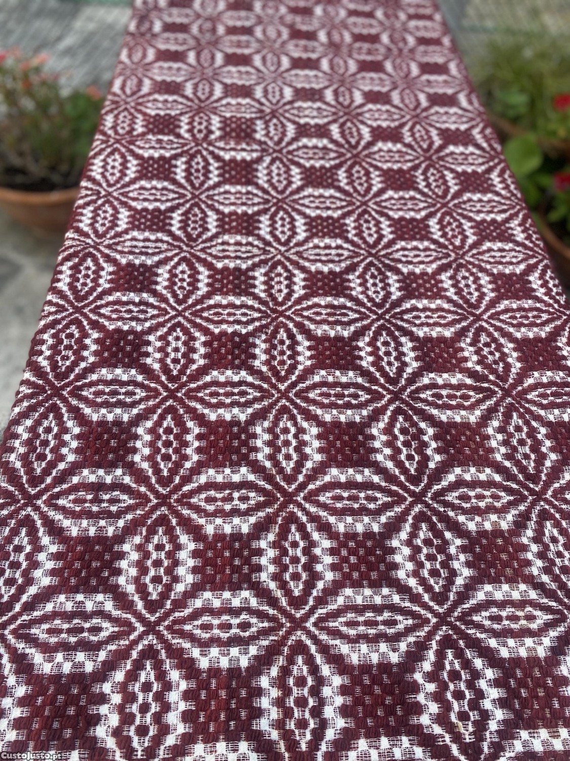 Preço: 70 €Peça antiga de tear - Manta bordada lindíssima em tons de bordeuax
