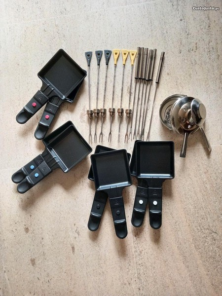 12 garfos, 8 pratos com cabo e 1 lamparina.