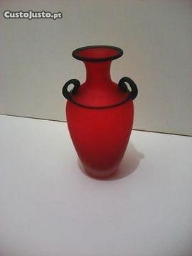 Jarrinha em vidro vermelho opalino ( não é pintado ) com asinhas e rebordo, em vidro azul escuro. Com 17,5 cm. de altura.