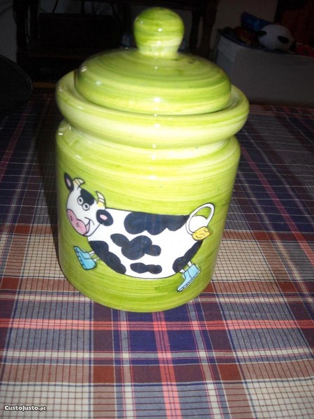 Pote em loiça com decoração original, poderá ser utilizado como saleiro ou qualquer outra utilidade