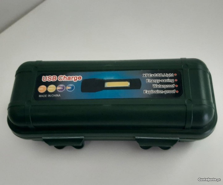 Poderosa lanterna de mão, 2 LED's, um lateral potente (8COB) e um com lente de aumento e com Zoom(Q5).