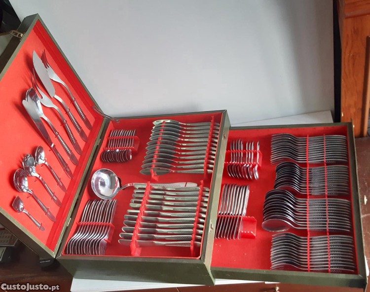 Preço: 100 €Retro Vintage Antigo Faqueiro 122 Peças Inox Super Incompleto c/ Estojo