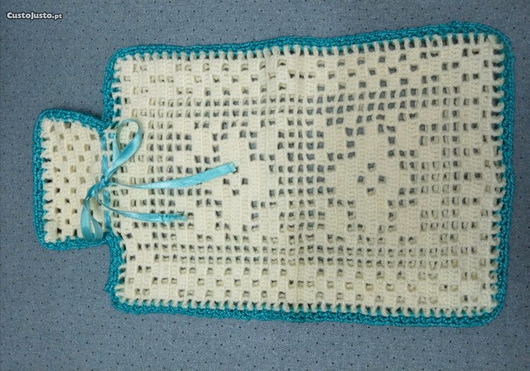 Disponível em azul e roxo, feitos em lã com fita de seda a fechar.