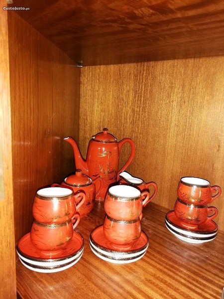 Composto por bule, leiteira, açucareiro, 6 chávenas e seis Pires. Louça Mori China - Made in Japan. Loica Fina com chinesa no fundo.