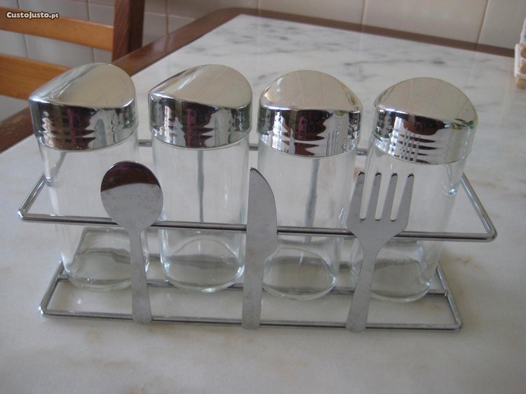 Vendo suporte metálico com 4 frascos de especiarias em estado Novo pois nunca foi utilizado.