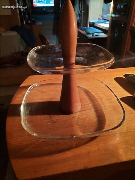 Suporte para fruta em vidro e madeira,, em estado novo..entrego em lx