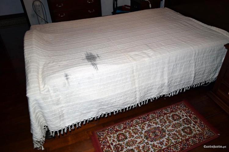 Como se pode ver nas imagens, o algodão tem defeito/mancha nas linhas verticais. Para usar assim ou aproveitar bocados mais pequenos. O tecido é resistente e está todo em bom estado estrutural.