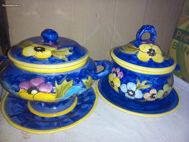 Preço: 15 €terrinas de loiça azul floreadas c/prato