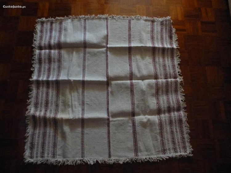 Toalha de chá em linho creme bordado a castanho, com 6 guardanapos, faz uma mesa muito bonita, nova.