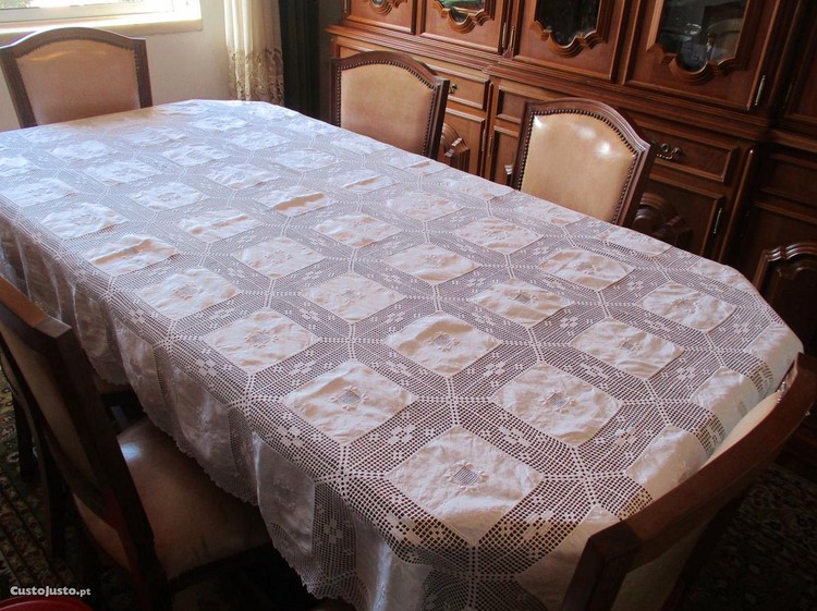 Vendo toalha de mesa em linho bordado e com renda. Nunca foi usada. Medidas: Comprimento - 2,30m Largura - 1,50m