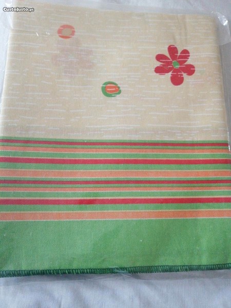Toalha de mesa retangular, com 2.50 x 1.50 cm estampada com riscas e flores, nova, ainda embalada