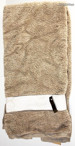 De excelente qualidade, é idêntica a outra toalha de rosto em que esta é completamente cinza rato e a outra é completamente preta. Muito invulgar e original, possui uma barra bordada à mão a ponto de cruz em preto e prata, com símbolos místicos: o deus cornífero e o senhor das matas(ou Green Man), representação dos instintos e do poder masculino. É uma peça de artesanato, modelo único e exclusivo, não há outra igual. É discreta e sofisticada, útil, prática e moderna, combinando com todos os estilos decorativos.