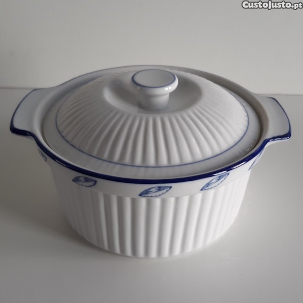 Preço: 10 €Travessa Assadeira Sopeira c/ Tampa Porcelana Branca Ondulada