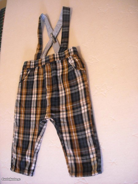 Vendo calça quentinha da Zippy, em tecido de algodão, xadrez e com suspensórios.