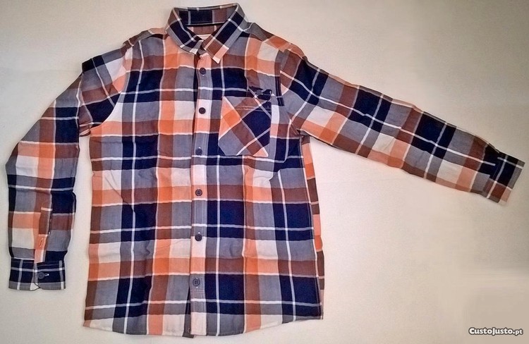 Preço: 14 €Camisa de Criança Xadrez Azul/Laranja, como Nova
