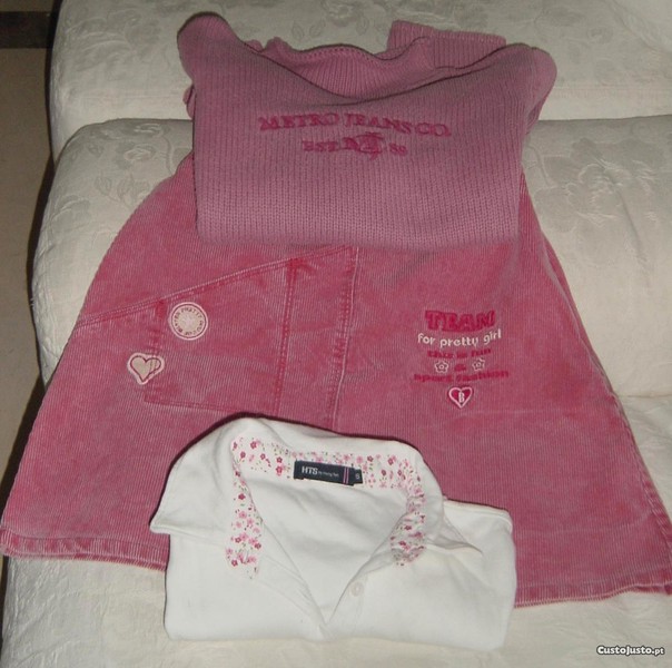 Conjunto de três peças p/ menina : Saia marca BROTES em Bombazina Rosa, Camisa marca HTS e Camisola marca METRO KIDS.
