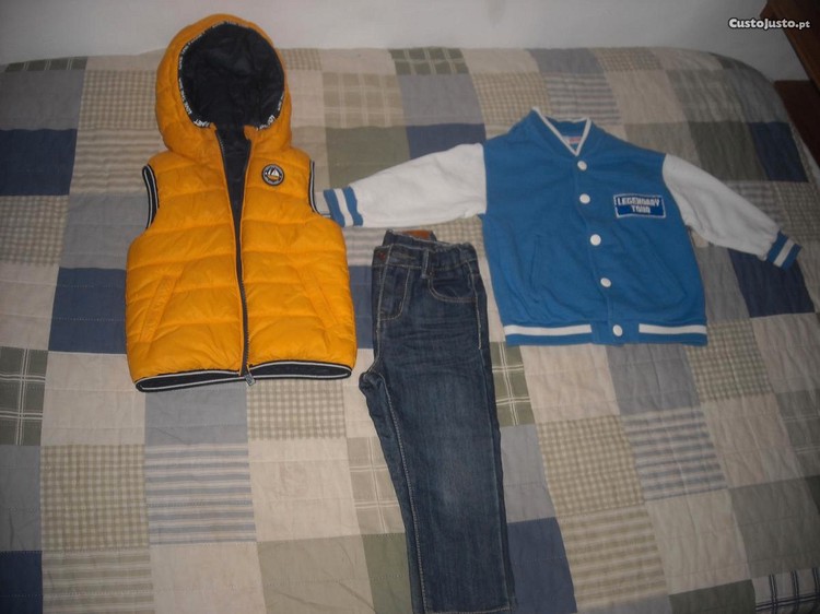 calça e casaco azul da Zara e colete é da Zippy, o colete da para usar na cor amarelo ou azul escuro.