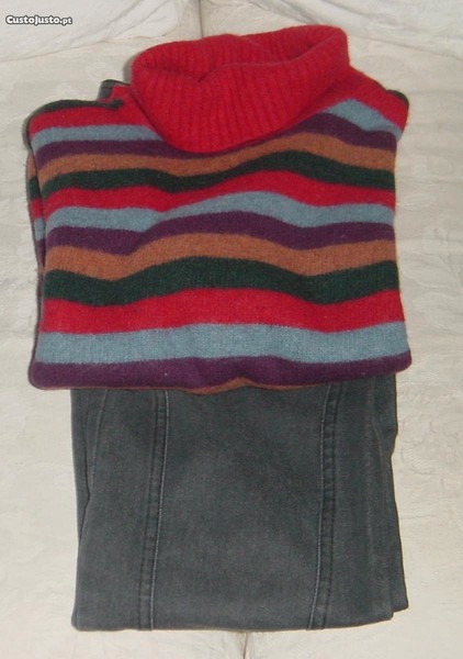 Preço: 40 €Conjunto p/ menina 12/14 Anos: Camisolão lã às riscas e calças azuis