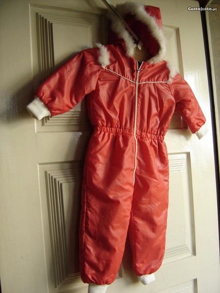 Preço: 10 €Macacão Vermelho adornado com pêlo branco - Dá para fato de Carnaval