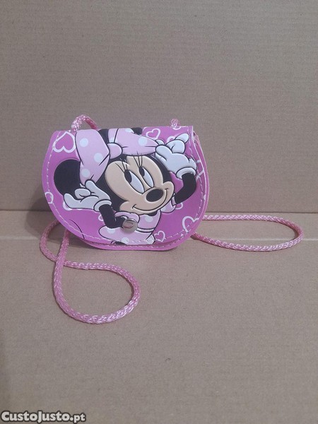 Pequena bolsa ou porta moedas da Disney para crianças. Com a imagem da Minnie em relevo, ela tem uma alsa de cordão cor de rosa para se poder usar a tiracolo. Mede 10 cm x 8 cm x 3 cm e está praticamente nova, muito pouco foi usada. Barato para desocupar. Negociável, vendo pela melhor oferta. Possibilidade de vir buscar em mão.