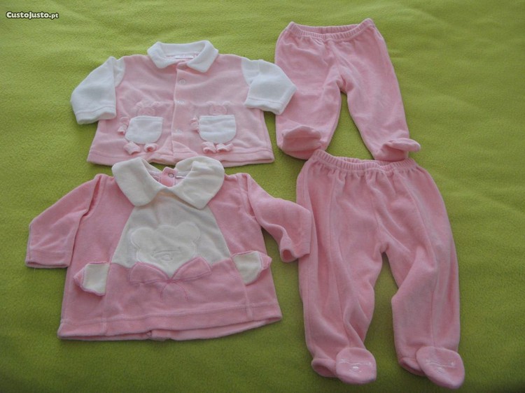 Dois conjuntos de calça e blusa em turco aveludado para bebé de 0 a 1 mês