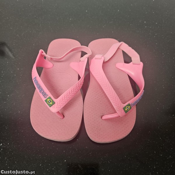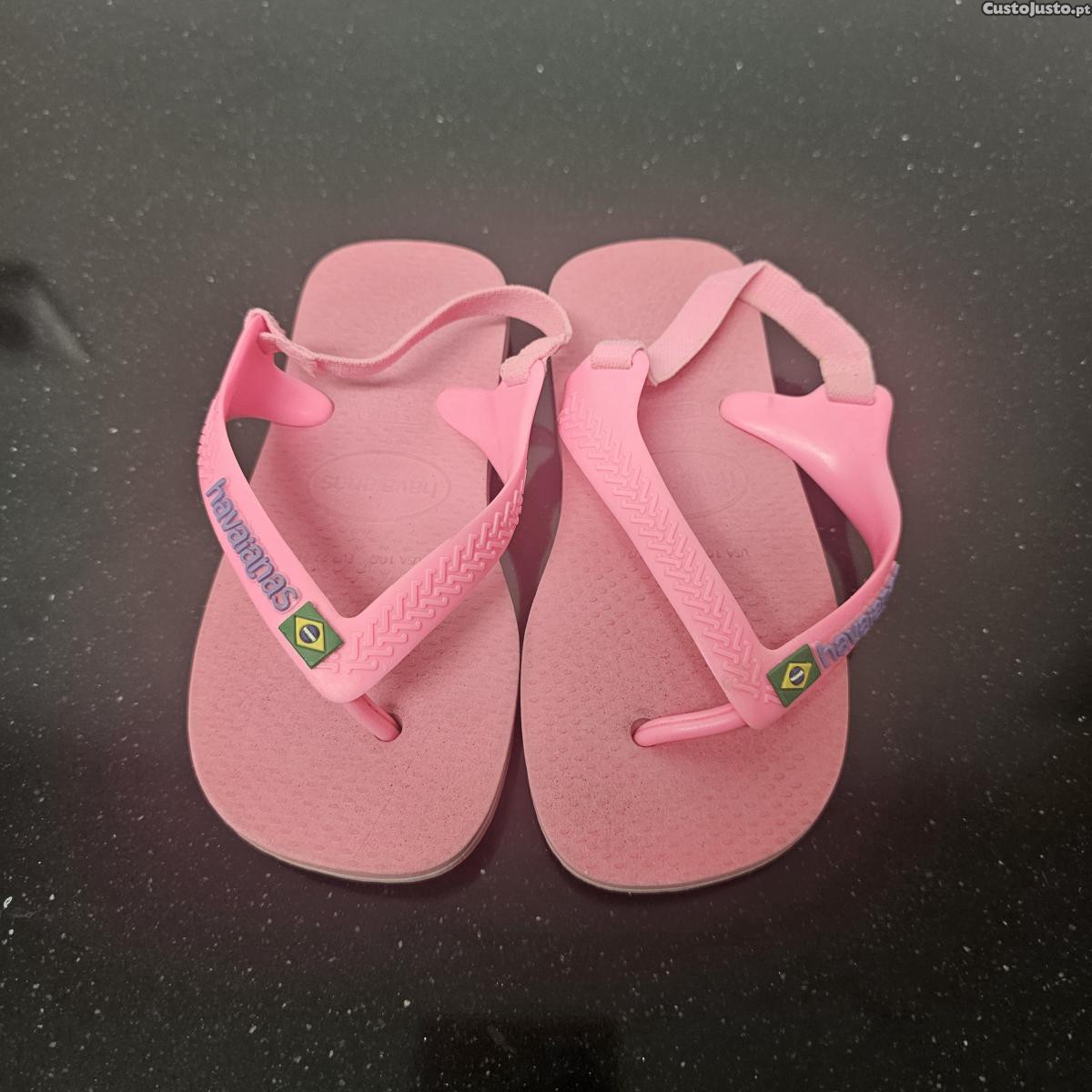 Sandálias de menina da marca Havaianas, com elástico de apertar atrás. Encontram-se em ótimo estado.