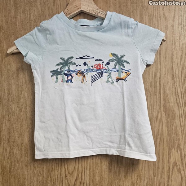 T-shirt para menino de cor branco e azul turquesa da marca Sergent Major. O material é 100% algodão. Muito bom estado. Tamanho: 98cm. Para meninos de 3 anos.