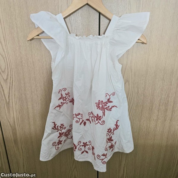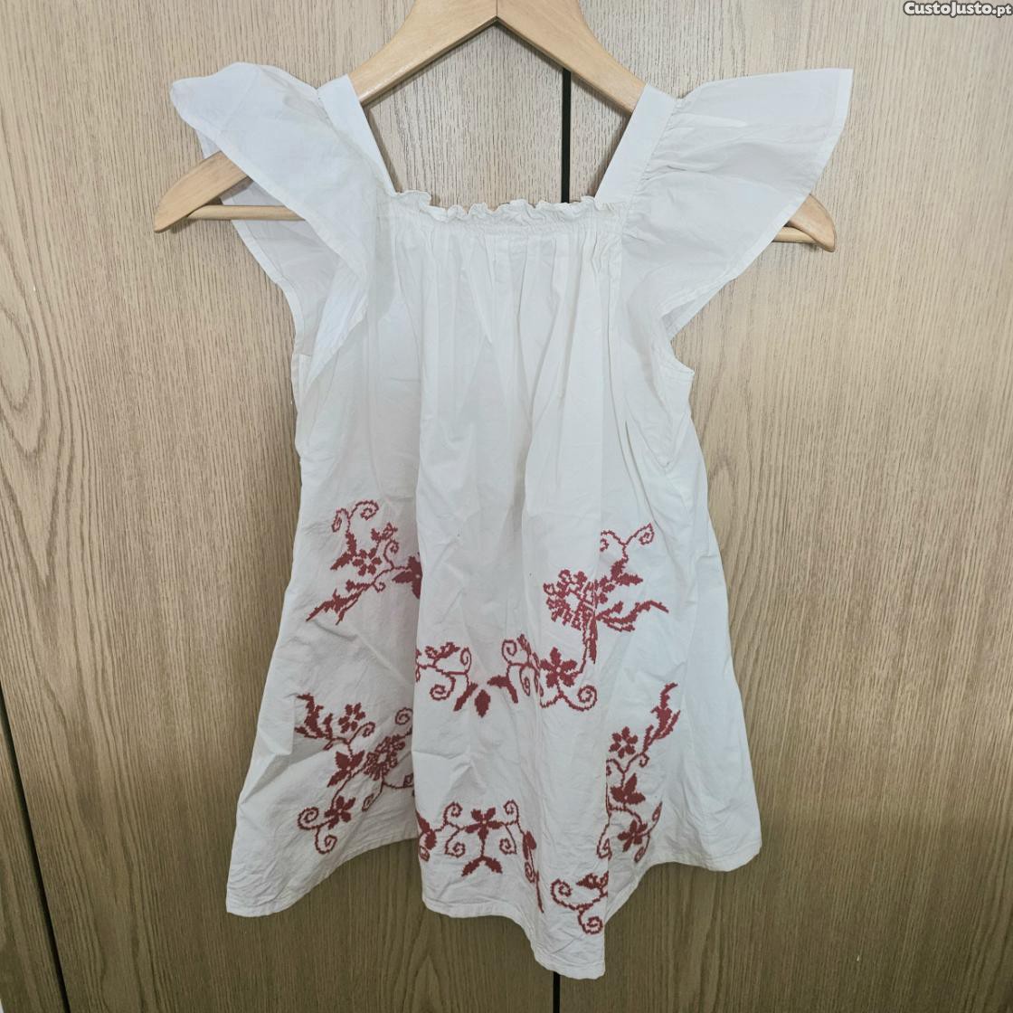 Vestido branco com bordado vermelho da marca Zara para meninas de 6 anos. Encontra-se em excelente estado, praticamente novo, usado apenas uma vez.