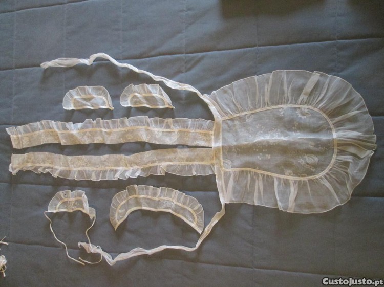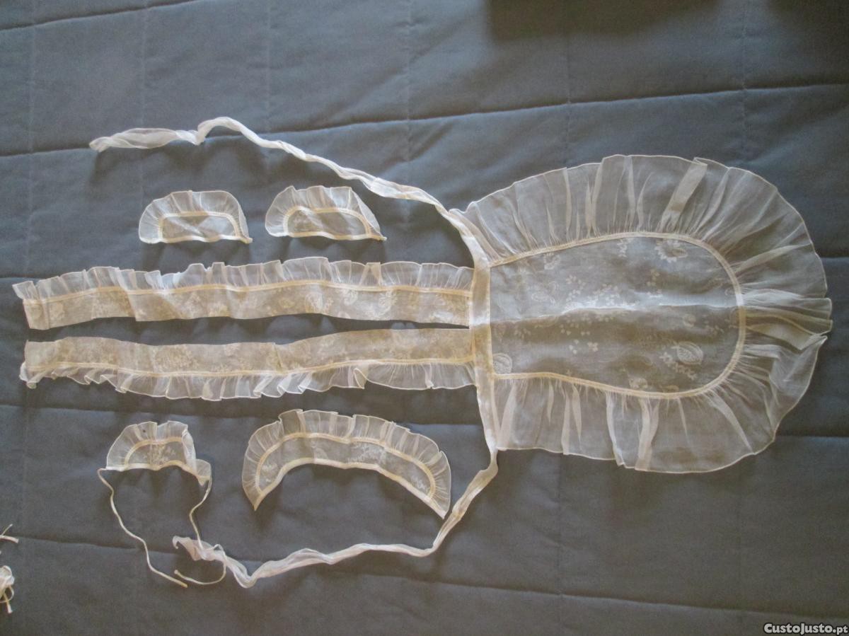 Vendo conjunto antigo de avental de cerimónia, com touca, gola e punhos.
