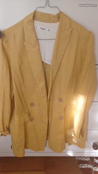 Preço: 20 €Blazer cruzado em linho amarelo da Mango