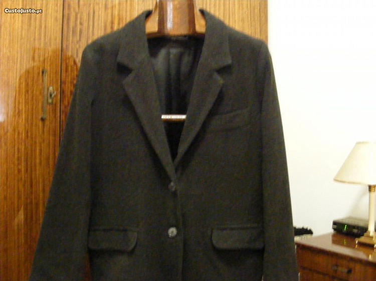 (Para desocupar). Blazer vintage de mulher. Está limpo e impecável. Cor cinzento antracite. É de caxemira e lã. O tamanho é um "M" grande, também servindo para "L". Tem 3 bolsos na frente, sendo 2 deles laterais. Entrego pessoalmente ou posso enviar pelos CTT.