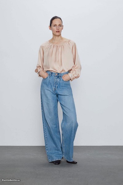 Blusa acetinada fluida com aplicações da Zara nova 20 eur