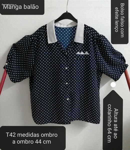 Preço: 10 €Blusa azul com bolas brancas