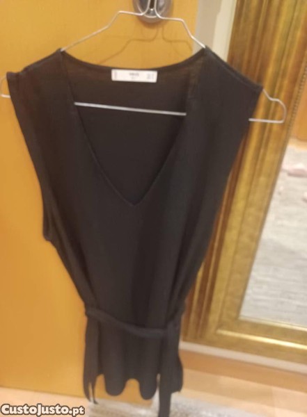 Preço: 10 €Blusa preta fluida com cinto da Mango nova