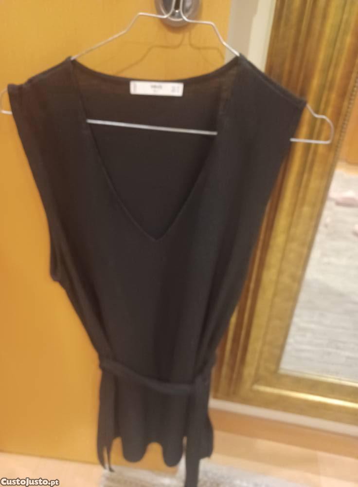 Blusa preta fluida com cinto da Mango nova 10 eur