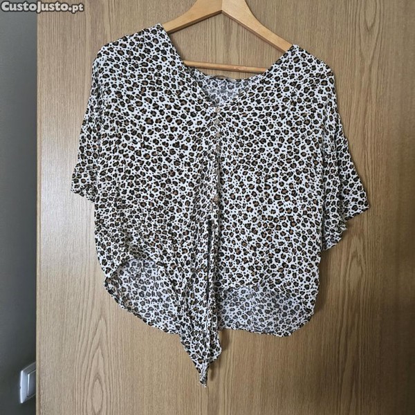 Blusa com botões na parte frontal da marca Stradivarius. A blusa é em tons castanho, branco e preto. Na parte frontal na parte de baixo pode-se para fazer um laço. Está em muito bom estado, apenas usada uma única vez. Tamanho S.
