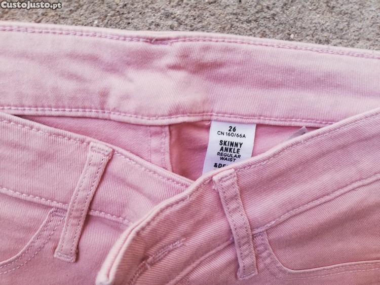 Calça de ganga em cor salmão, perfeita para um look descontraído. Aproveita esta oportunidade para adicionar um toque de cor ao teu guarda-roupa.