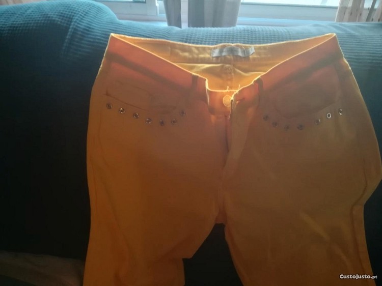 calças tamanho large , cor amarela, nunca foram usadas, são de marca, para usar dia a dia. Portes ctt não incluídos