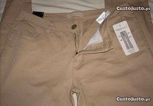 Calças algodão Yessica cor camel e N. 42 - Novas + Oferta Blusa