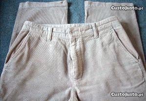 Calças em bombazine com fecho, marca DOCKERS KHAKIS, cor bege e tamanho W30 L30 (40). Oferta de camisa. Pouco uso e como novas. Portes a incluir ou entrega em Sacavém Centro. Enquanto o anúncio estiver activo, o artigo está DISPONÍVEL.