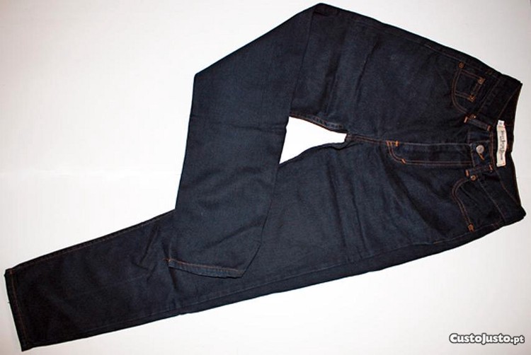 De elevada qualidade, são da conceituada marca Sisley Denim, ORIGINAIS. Denim de cor azul ganga muito escuro, possui dois bolsos de chapa atrás e dois bolsos à frente, mais um bolo para moedas. Fecham à frente com botão metálico e fecho éclair escondido. São versáteis e podem ser usadas em ocasiões mais casuais e descontraídas, mas também em ocasiões um pouco mais formais, dependo das peças com que combina.