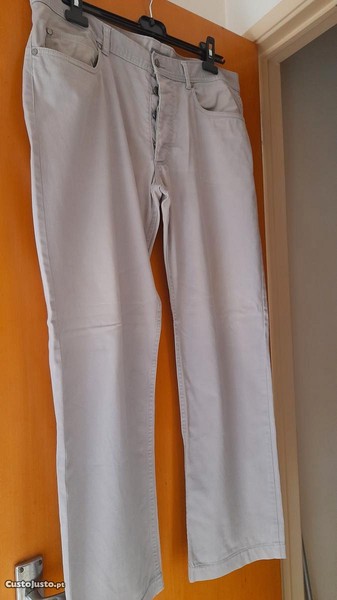 Calças algodão, marca H&M, cor cinza claro, tamanho 40. Oferta de camisa. Bom estado. Portes a incluir ou entrego em Sacavém Centro. Se está a visualizar este anúncio é porque o artigo se encontra DISPONÍVEL.