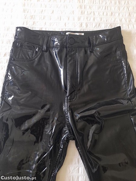 Calças Leggings Tipo Latex Preto Jeans Senhora 36 Pull & Bear Novo