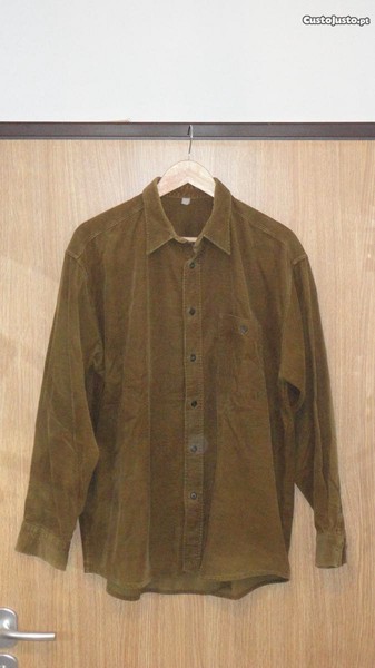 Camisa de homem em bombazine cor castanha, tamanho L.